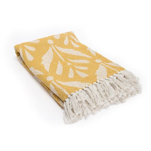 Manta 100% algodão com acabamento extra suave em mostarda e cor natural. O seu desenho com flores em ambos os tons vai caber em qualquer estilo decorativo, também possui franjas nas pontas para maior decoração. Essa manta é confeccionada com materiais de qualidade para proporcionar uma sensação agradável ao toque. É muito quentinho para que os seus momentos de relaxamento no sofá ou na cama sejam mais agradáveis com um cobertor macio e também muito decorativo.